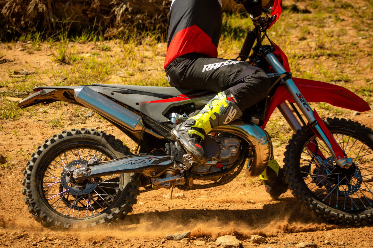 Cada componente foi selecionado para suportar o uso extremo. A 300 TSX apresenta um novo chassi com protetor de quadro integrado à carenagem, aros de alumínio com raios de inox de 4 mm e o moderno painel LED multifunções. A frenagem é garantida pelo sistema hidráulico de pistão duplo com discos ventilados (260 mm na frente e 220 mm atrás), oferecendo segurança máxima.